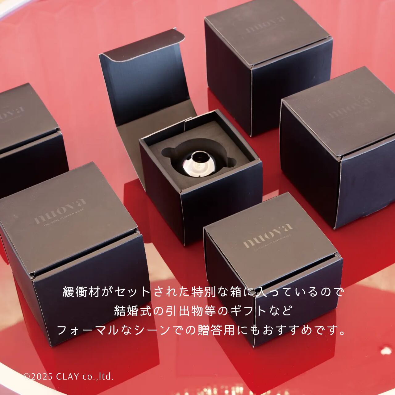 ■ミニマルで、高級感のあるクリスタルガラスの一輪挿し。重みがあり、茎の長い大輪のバラでも安定して活けられます。緩衝材がセットされた特別な箱に入っているので、結婚式の引出物等のギフトなど、フォーマルなシーンでの贈答用におすすめです。