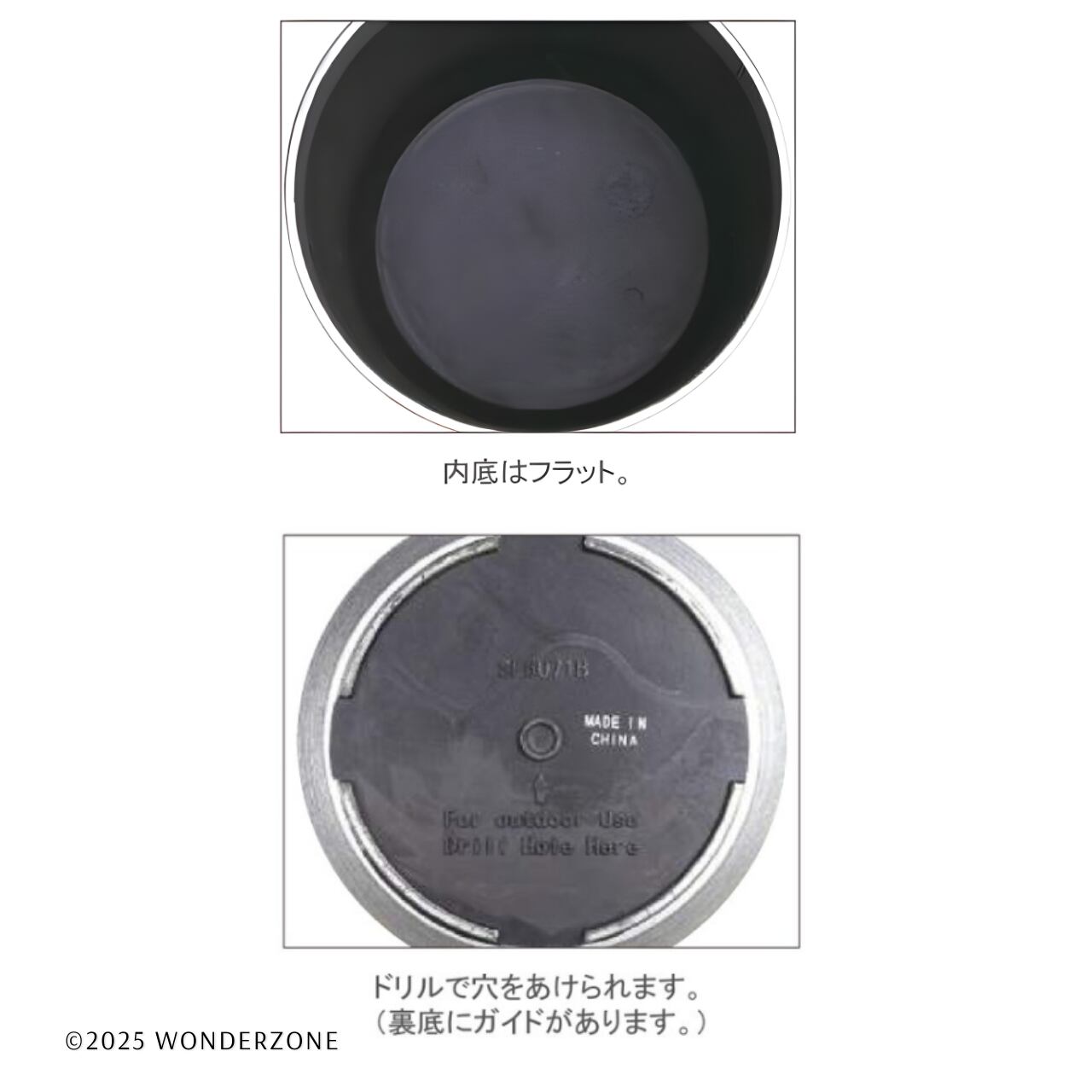 重量約2.7kg 内面はフラットです。ドリルで穴を開けられます(裏底にガイドがあります)