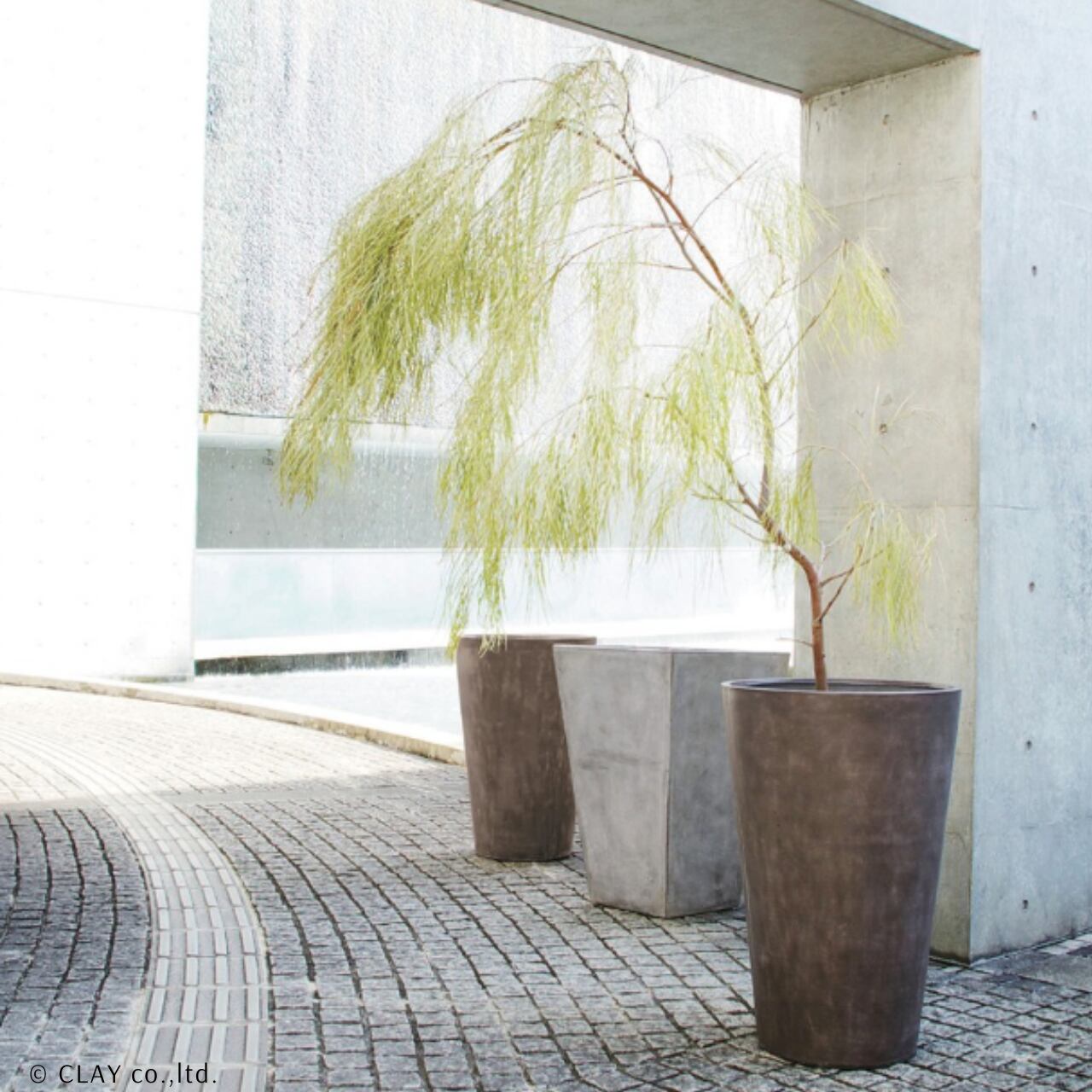 テラコッタのような風合いを感じさせながらも軽さと耐久性を両立させた新素材プランター「テラメント」海底工事に使われる水に強いマグネシアセメントとファイバーグラスを混ぜ合わせて整形した優れた不燃性・耐久性・耐水性を可能にした軽量プランターです。色は全て生地に練り込みで発色しているため経年に応じて生地の色が変化するのが特徴です。
