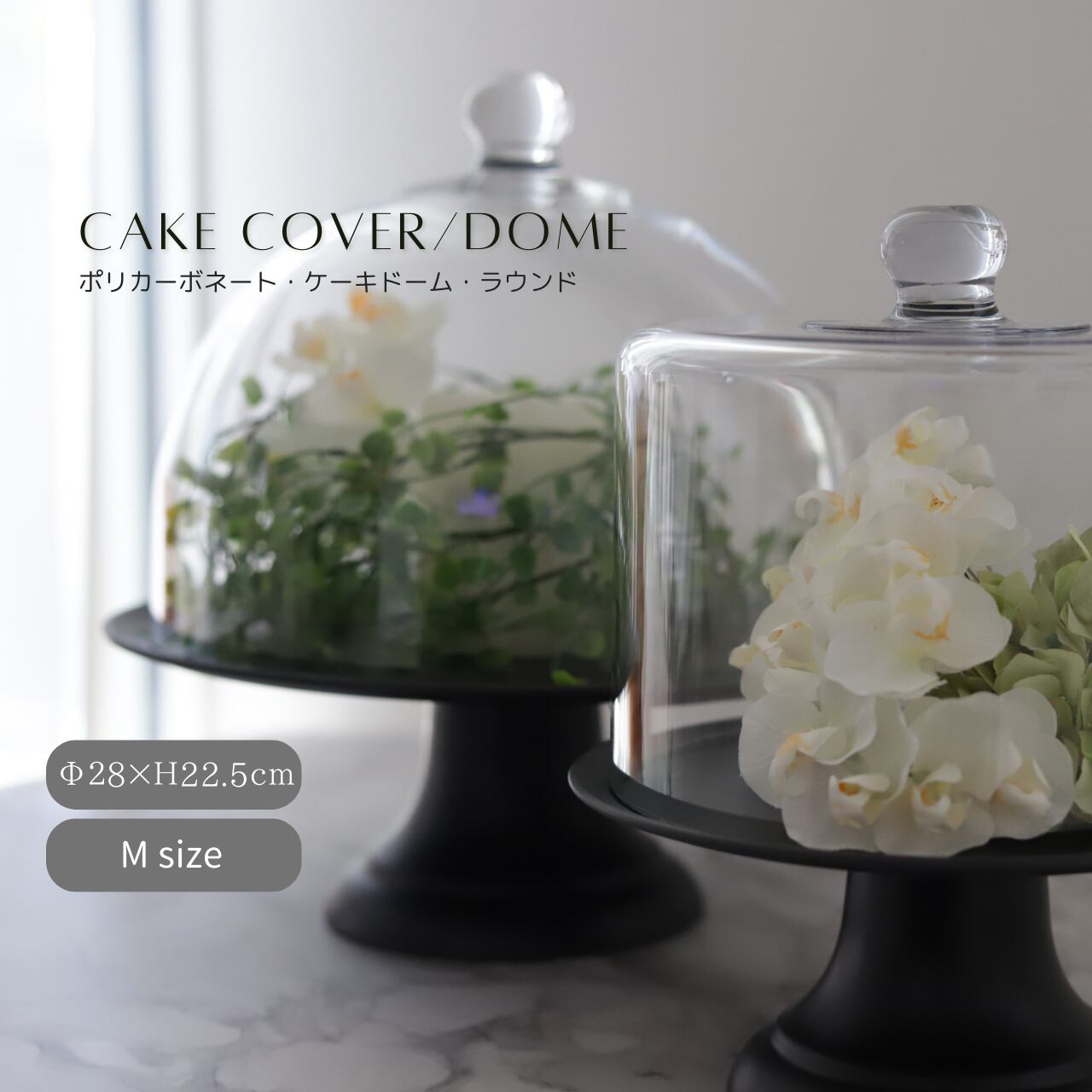見た目はガラスなのに割れない。ポリカーボネート製のドームです。コンポートと組み合わせ、様々な用途にお使いいただけます。パンを入れるとおしゃれなパン屋さん。ティータイムにはクッキーやマカロンを置いてカフェ風に。お好みのお皿やトレーと合わせ、お子様やわんちゃんねこちゃんのおやつを入れておくのもおすすめです。