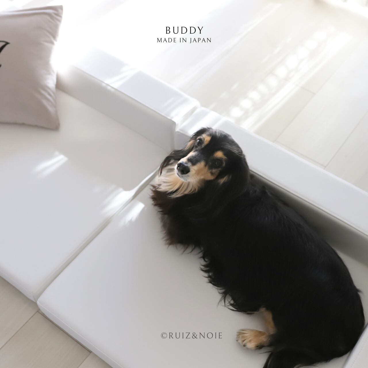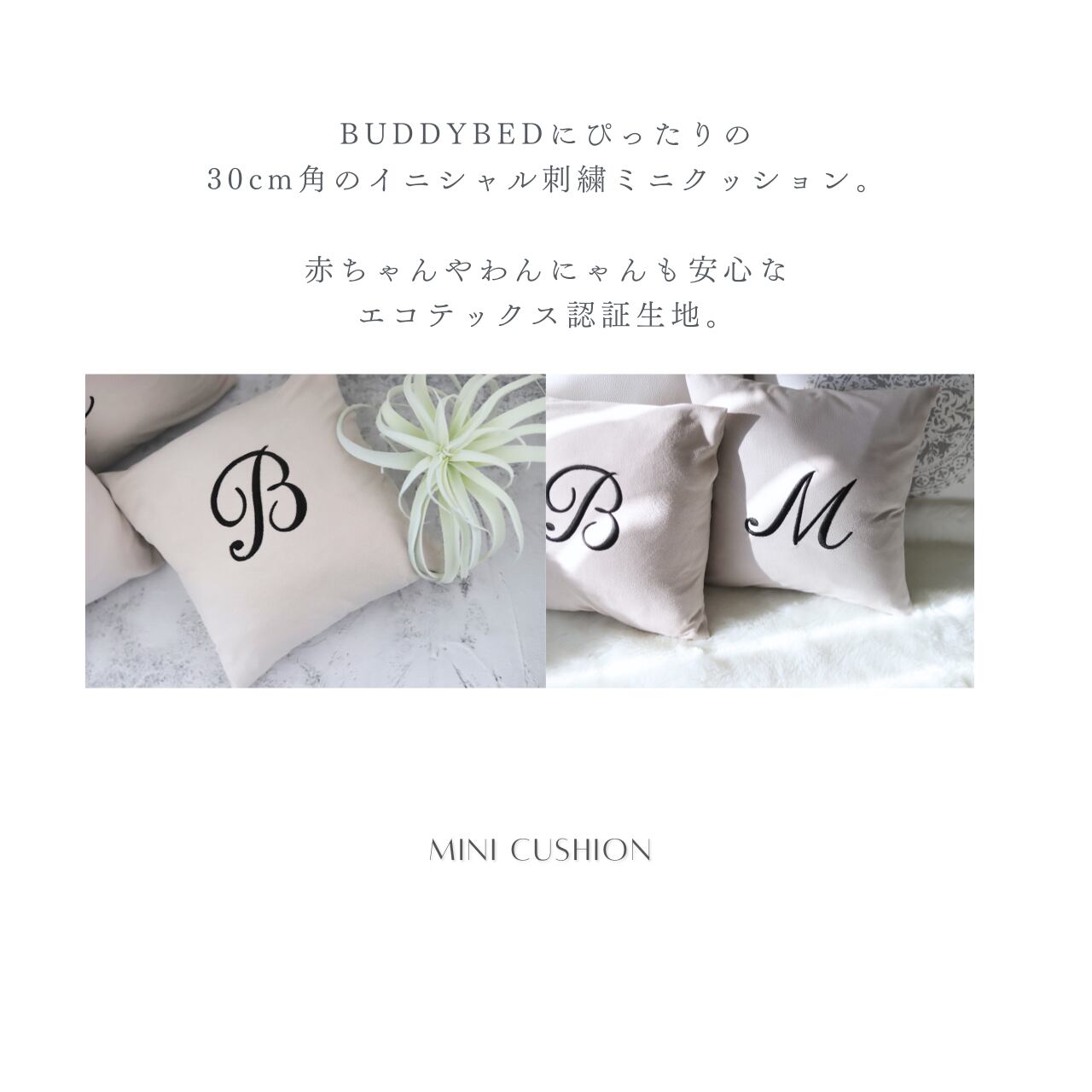 シンプルなBUDDYには、ベッドマッドやクッションなどのアクセサリーがいっぱい。インテリアに合わせた素敵なコーディネートをお楽しみいただけます。